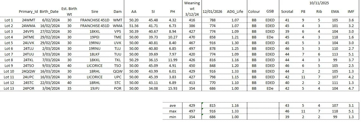 “We sell EU steers when they are finished at carcass weights from 340 - 410kg at 17 - 22 months,” said James Darling,” For LBPL, Average Daily Gain: (ADG Life) is an important measurement trait.”