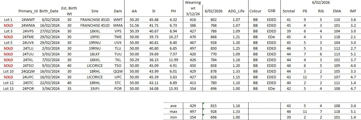 The annual AuctionPlus sale of 27 black composite bulls was held on the 11th of February 2025 with 13 sold online to a top of $12,000.